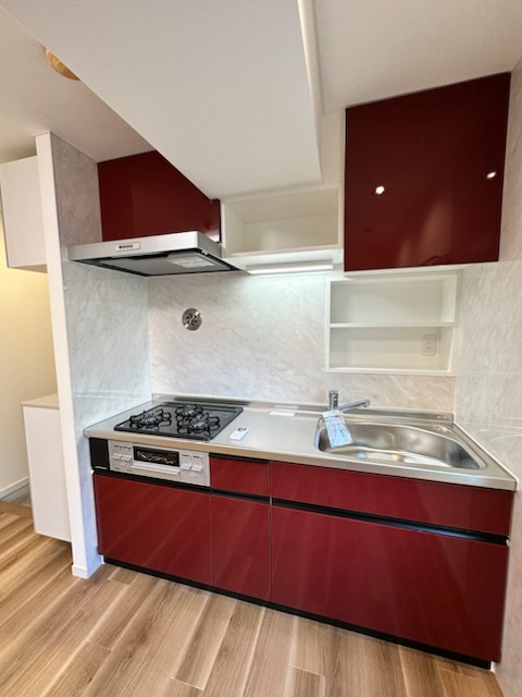 昭和レトロのキッチンはワインレッドのキッチンへ
