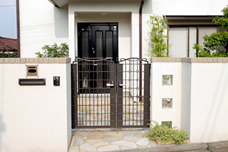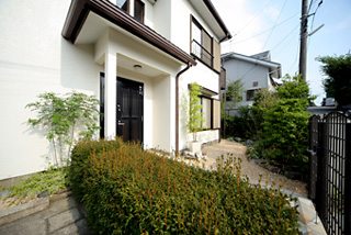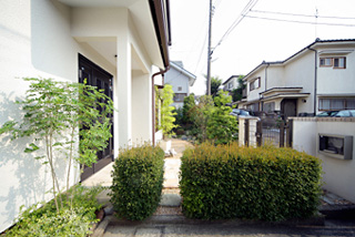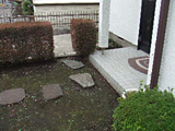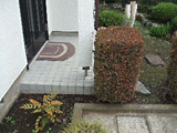 今までは、(特に冬)御主人が庭に出ると、玄関が泥だらけ!とご不満だった奥様も石張りで滑らないアプローチと、巾が広がってゆとりのできた門扉ににっこり。