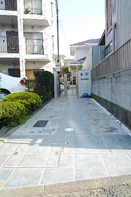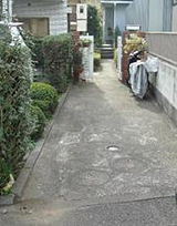 (1)![]() 以前の道路からのアプローチ。雨が降ると水がたまる、夜が暗い。 |