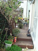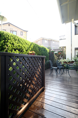 (5)![]() 老朽化して一部破損しているウッドデッキ |