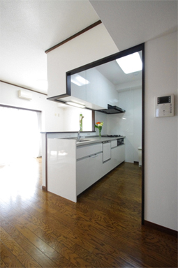 2.既存のL型キッチンから、食洗機を組み込んだI型のキッチンに交換。