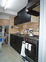 ・キッチンの設備も古く、使い勝手もあまりよくない、コンロ前に棚のようなスペースがあるが、油などが飛び清掃が大変。ご主人の趣味の陶芸で作られた食器が沢山あり収納がたりない。