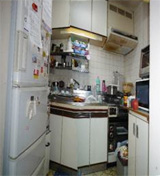 ◆キッチンが狭く、収納家具やゴミ箱などを置いてるのでコンロ前に立てないしカウンターが低く腰が痛い。