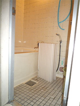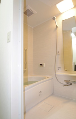 1116サイズのコンパクトなユニットの為、手摺の位置も標準位置でなくショールームでご主人様にシュミレーションしていただき決定し、使い易い位置に取り付けました。