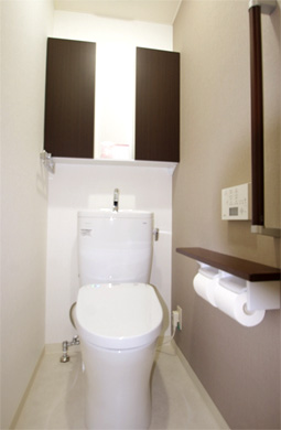 玄関に大き目の収納を取り付け、靴だけでなく、日用品も収納できるようにした。