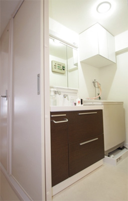 全体的に建具、設備等を、明るい色に仕上げ、統一感をだし、空間が広く感じるようにした。