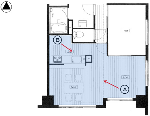 ①狭いキッチンの中、奥行きを広く、開放的にしたい。