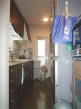 キッチンと後ろの食器棚の間隔が狭い為、何時も息苦しかった。