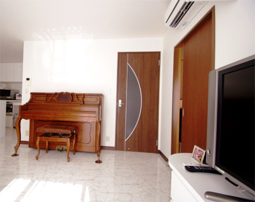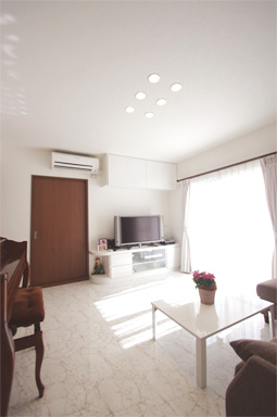 ②グラフィアートスーパーファインで暖かくなったリビング(ビアンコ)