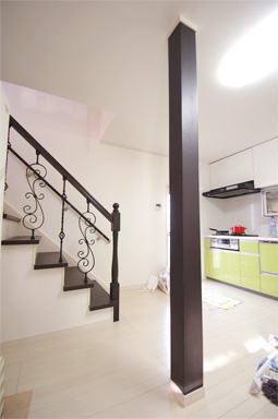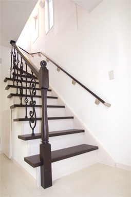 既存部分を生かし、手摺はデザイン性の高いアイアンを使用。オープンでモダンに変身しました。