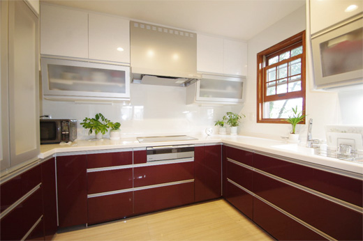 ③吊戸棚下のガラス収納を3ヶ所付けて、直ぐに取り出せるのでとても使い易くなりました。