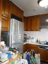①木目の暗い雰囲気だったキッチンが、明るく、隣のリビングダイニングの内装と良くマッチして、とても清潔になりました。