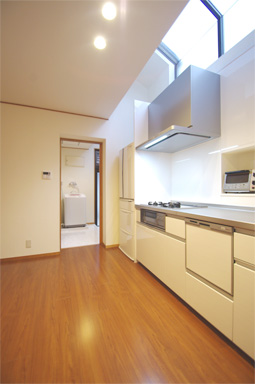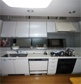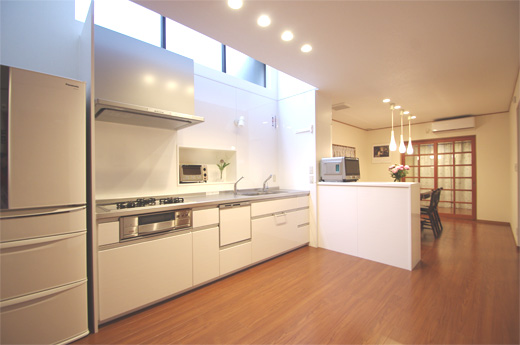 3.キッチンは食品庫を含めてTOTOの既製品に交換。通路部分を広げました。