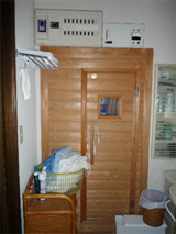 使用していないサウナ室のある洗面所。