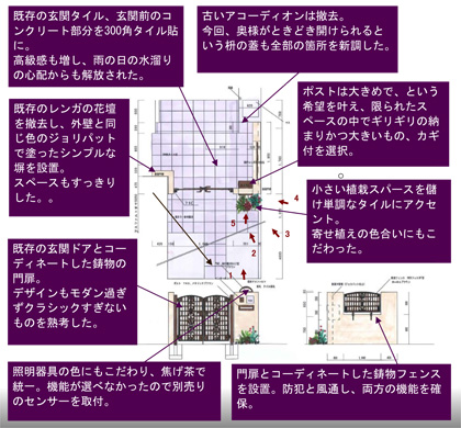 アクセントのある、華やかな玄関アプローチになりました。