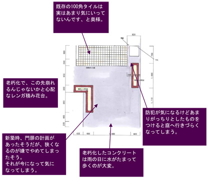 2.玄関の右側から簡単に奥へ行けそうで心配、と奥様。