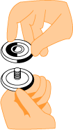 @ハンドルのカバーナットを時計回りと逆に回してはずします。次にハンドルをゆるめ、スピンドルごと水栓金具から取り外します(これはこのまま置いておきます)。