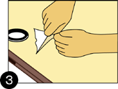 B木工用ボンドを薄めたものをふすま紙のうらに塗りていねいに張ります。